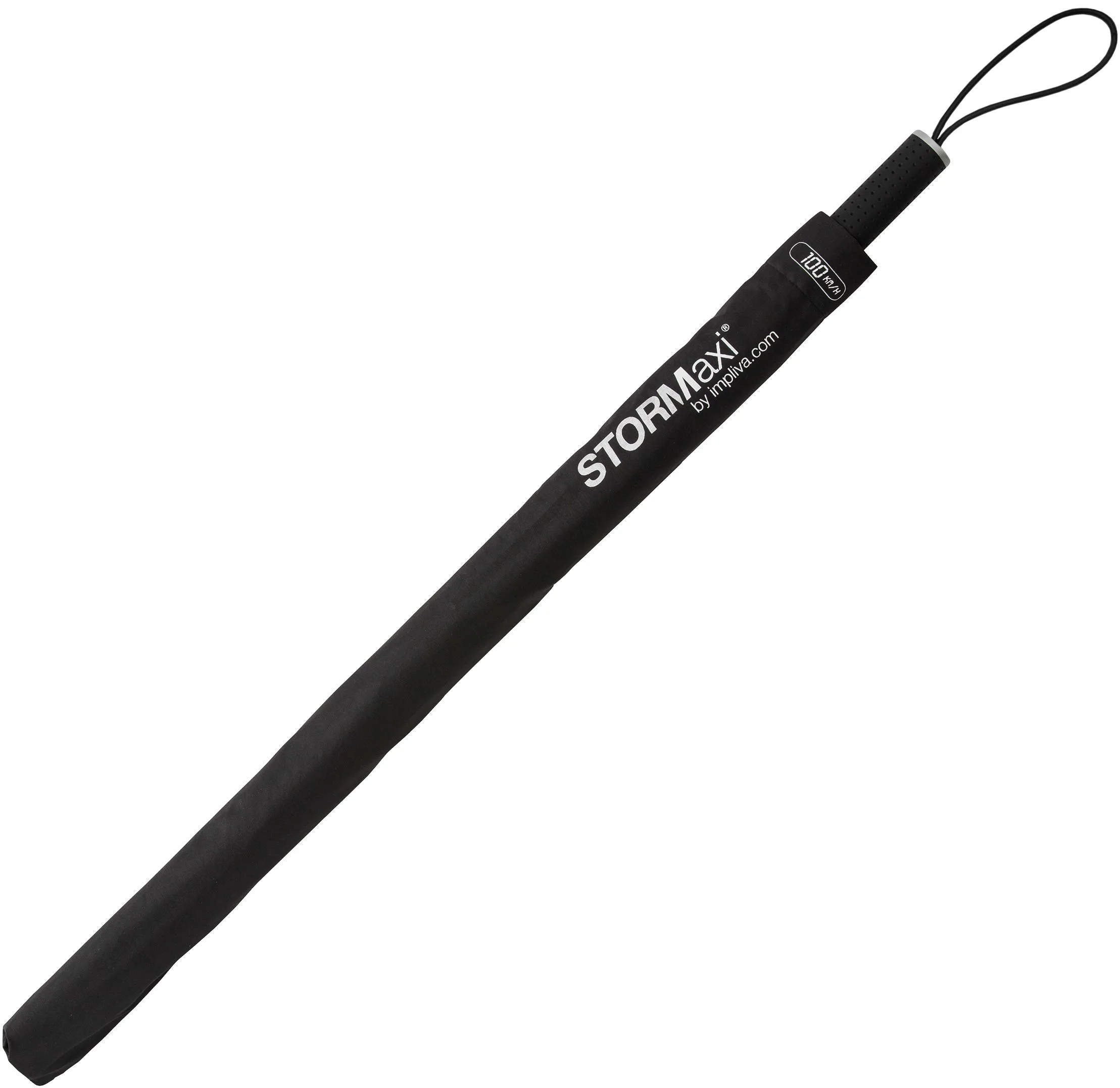 Denne stormsikrede stormparaply, Stormfighter, har et aerodynamisk design, der gør at paraplyen ikke vender vrangen ud, når du kommer ud i stærkt stormvejr. Den forkortede front på paraplyen giver dig et bedre udsyn. Paraplyen kan stå imod vinde med op til 100 km i timen. Med paraplyen følger der et praktisk cover, så paraplyen er nem at medbringe.